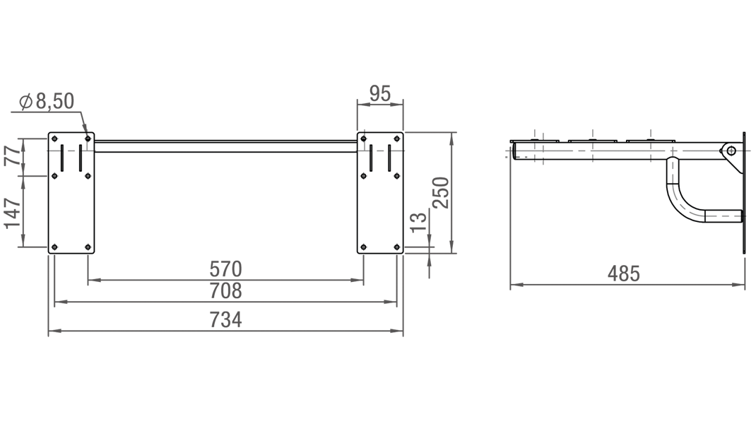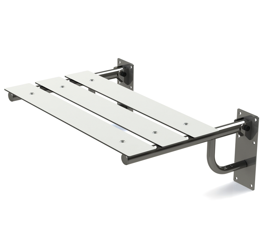 . Assento: composto por 3 réguas de compacto fenólico (4mm de espessura), um material de alta resistência e fácil limpeza.